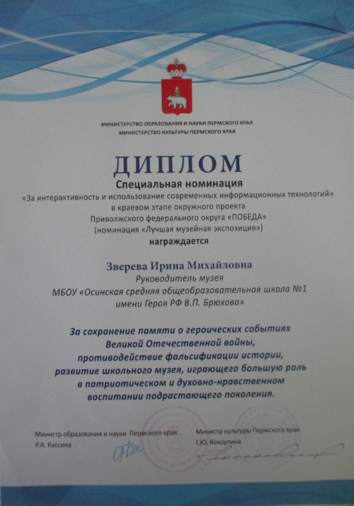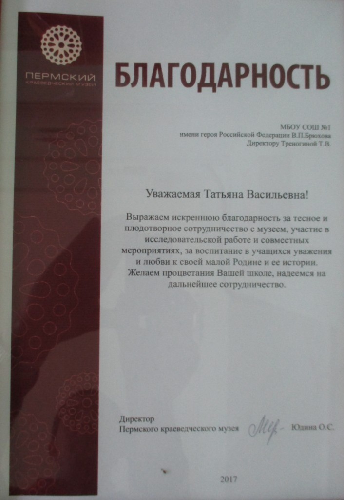 Благодарность Пермский краеведческий музей